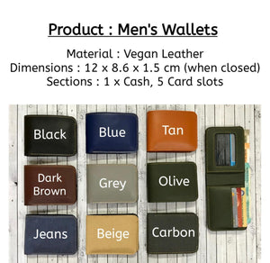 • Faux Leather Mens wallet has 1 compartment for currency notes. It has slots for 3 cards and also has slot for ID card and a hidden slot.