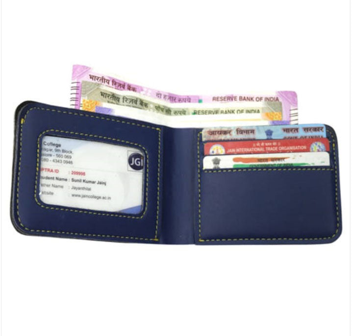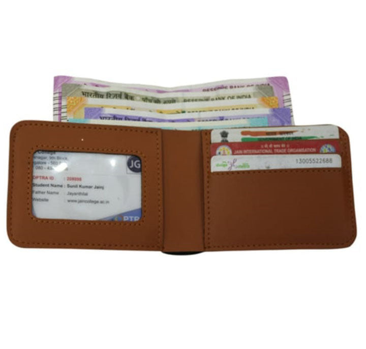 • Faux Leather Mens wallet has 1 compartment for currency notes. It has slots for 3 cards and also has slot for ID card and a hidden slot.